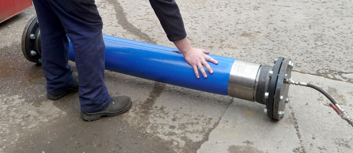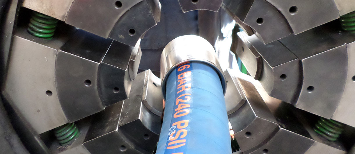 Carefully swaging UHMWPE hose onto a steel test piece using our specially designed chemical swage